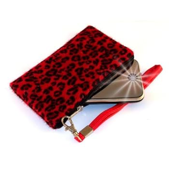 "Sauvage" Rouge, Portefeuille à partir d'une imitation fourrure de luxe avec Glitter Sangle de poignet / Cas avec zip pour LG BL20 New Chocolate. Très beau look, Housse d'origine.. Reviewed by Mike S. Rating: