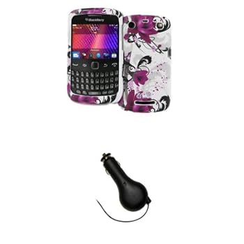 EMPIRE White with Purple Flowers Design Hard Case Cover + Retractable Car Charger (CLA) for BlackBerry Curve 9360. Reviewed by Olive R. Rating: