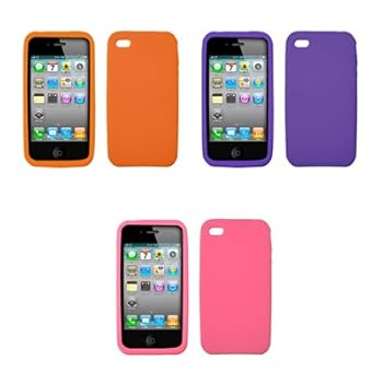 3 Pack of Premium Silicone Gel Skin Cover Cases for AT&T Apple iPhone 4 [Orange / Pink / Purple][Accessory Export Brand Packaging]. Reviewed by Milner O. Rating:
