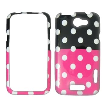 HTC ONE X / 1 X AT&T - White Polka Dots on Hot Pink on Black Hard Case, Cover, Snap On, Faceplate. Reviewed by Bobby P. Rating: