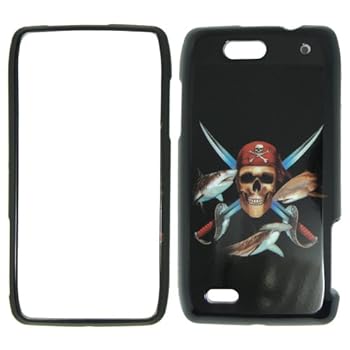 Motorola Droid 4 XT894 Verizon - Pirate Skull Swords and Fish on Black Hard Case, Cover, Snap On, Faceplate. Reviewed by Rocky C. Rating: 4.6