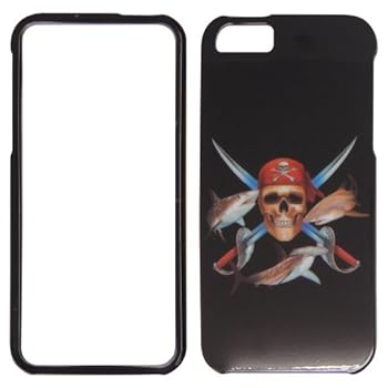 Apple iPhone 5 - Pirate Skull Swords and Fish on Black Hard Case, Cover, Snap On, Faceplate. Reviewed by William A. Rating: 4.2