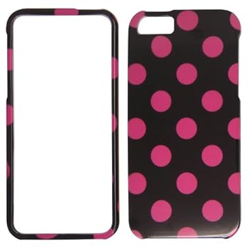 Apple iPhone 5 - Hot Pink polka dots on Black Hard Case, Cover, Snap On, Faceplate. Reviewed by Eric G. Rating:
