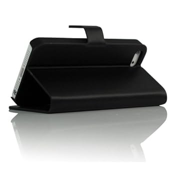 Black Chic Brushed Texture Folio Design Premium PU Leather Stand Case Cover Wallet for iPhone 5(7778-3). Reviewed by Peter M. Rating: