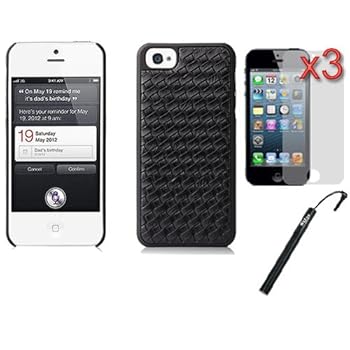 Evecase Housse étui en cuir Pour Apple iPhone® 5 5G - noir motif tissé + 3 × FILM PROTECTION ECRAN + Noir Stylet. Reviewed by Perry S. Rating: