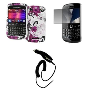 EMPIRE White with Purple Flowers Design Hard Case Cover + Screen Protector + Car Charger (CLA) for BlackBerry Curve 9360. Reviewed by Sandy L. Rating: